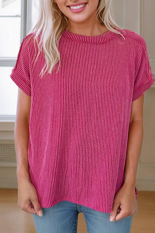 Textured Knit Exposed Stitching T-shirt