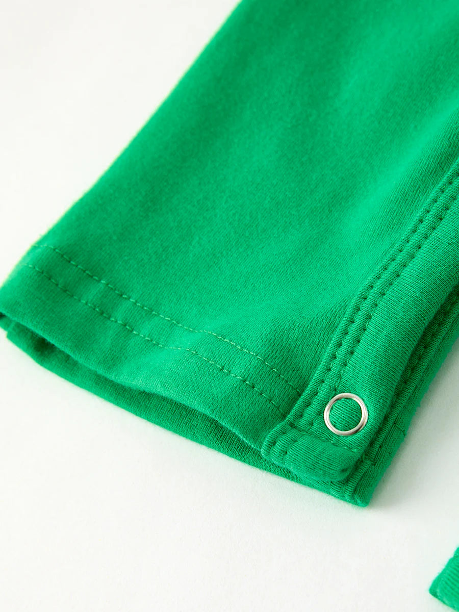 This baby boy romper features festive Christmas character candy embroidery, adding a charming seasonal touch to your little one’s wardrobe. Crafted for comfort and ease, it offers soft fabric and convenient snaps for quick diaper changes. Perfect for holiday photos or everyday wear during the season, this romper combines practical design with delightful holiday spirit.