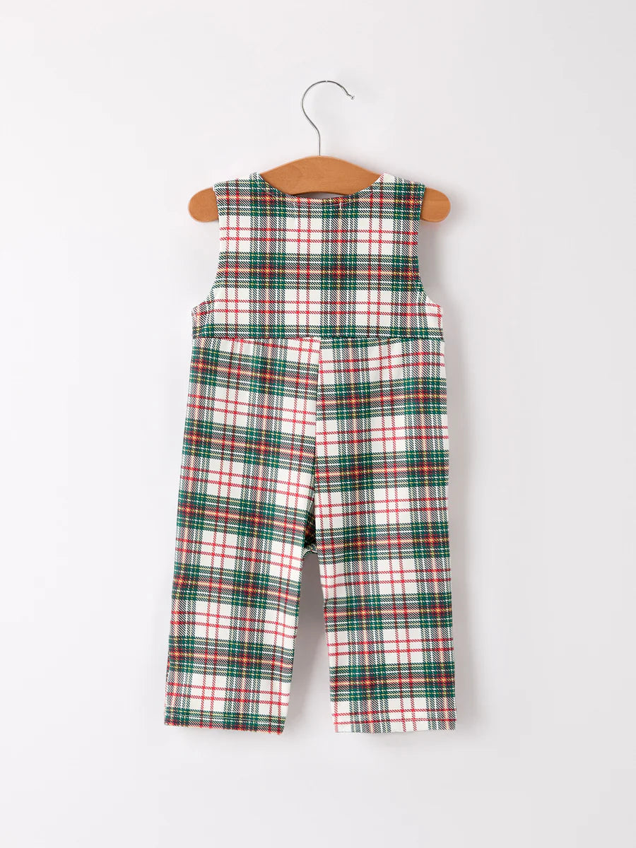 Christmas Jonjon Plaid Smocking Embroidered Boys Romper