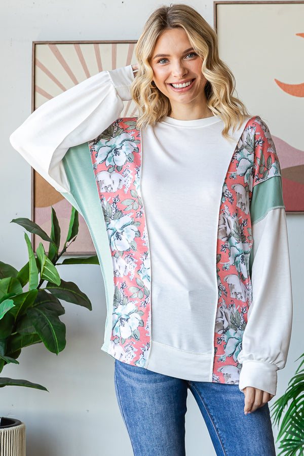 Floral Colorblock Long Sleeve Top - Stylish and Comfortable Casual Top